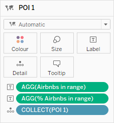 This returns True or False and, when added the Colour shelf, can be used to colour encode the Airbnb locations: