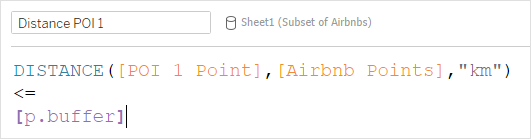 I then used the following calculation to determine which Airbnb points intersect with the buffer